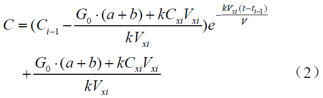 診室常態(tài)人流量為常數(shù),其新風(fēng)需求是明確的,按照2h-1 新風(fēng)換氣次數(shù)或人均30m3/h 新風(fēng)量指標計算均能滿足要求。但是當(dāng)處于非常態(tài)時,就需要對診室的室內(nèi)空氣質(zhì)量做具體分析。當(dāng)t 于非常態(tài)時段內(nèi),室內(nèi)CO2濃度隨時間的變化可表達為: