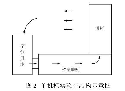 單機(jī)柜實(shí)驗(yàn)臺(tái)的基本結(jié)構(gòu)如圖2所示,實(shí)驗(yàn)臺(tái)放置于某研究單位空調(diào)綜合實(shí)驗(yàn)室的環(huán)境室中,實(shí)驗(yàn)臺(tái)主要包括:機(jī)柜、架空地板和空調(diào)風(fēng)柜。