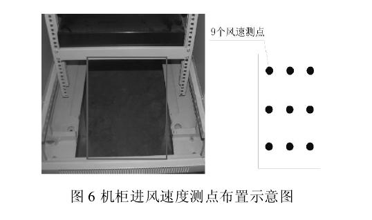 機(jī)柜進(jìn)風(fēng)速度測(cè)點(diǎn)布置如圖6所示,在進(jìn)風(fēng)口布置9個(gè)測(cè)點(diǎn),取各測(cè)點(diǎn)的算術(shù)平均值作為機(jī)柜進(jìn)風(fēng)速度。